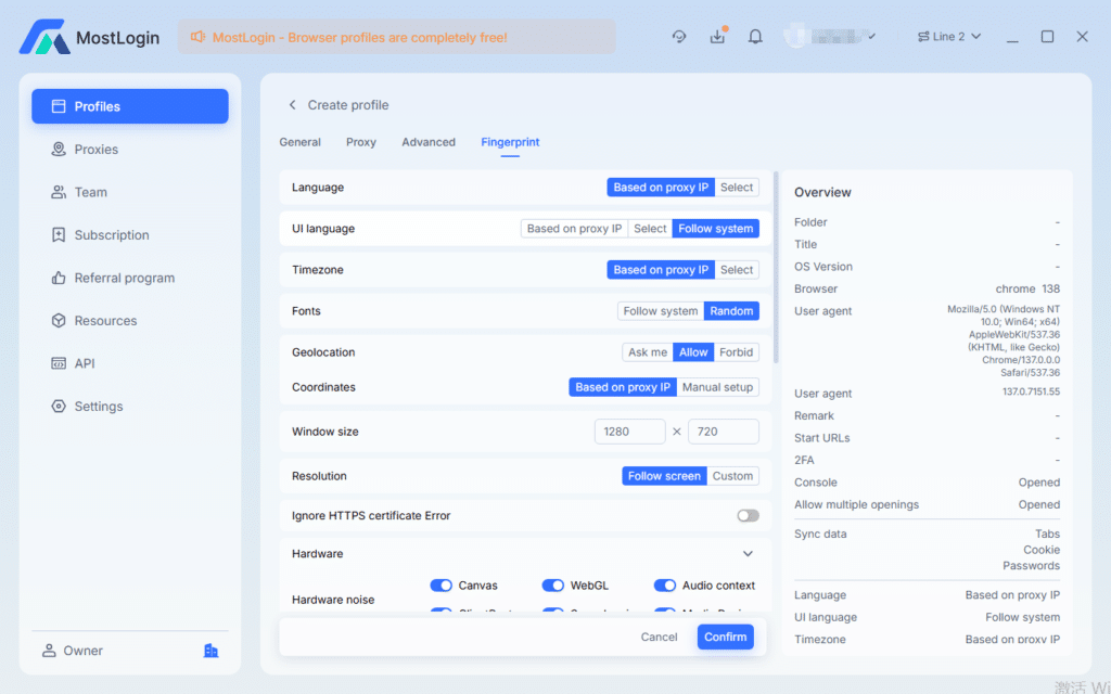 MostLogin integrates anti-detection browser technology and creates a completely isolated browser profile for each account, including: